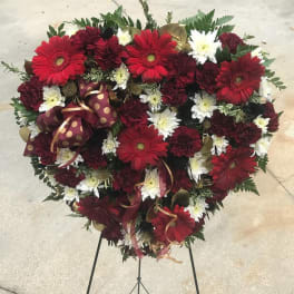 Price: $179.95 Deepest Sympathies Standing Spray - Red (Deluxe Shown) Product Tags: Next-day Delivery
